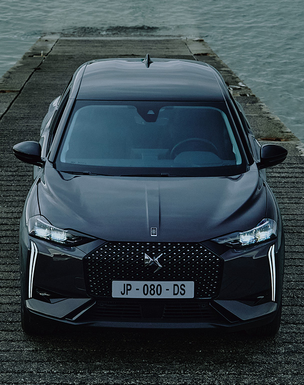 - Parrilla delantera en negro brillante con logotipo DS dorado