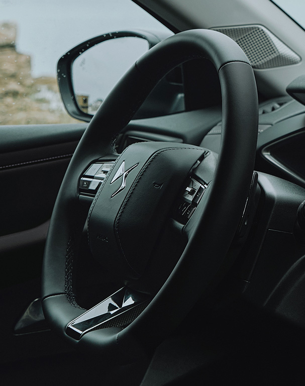 - Interior en Alcantara® negro con distintivo DS PERFORMANCE Line en el salpicadero